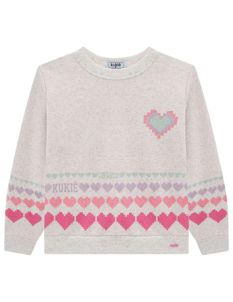 Blusão Infantil Meninas em Moletom Linho e Corações - Kukiê