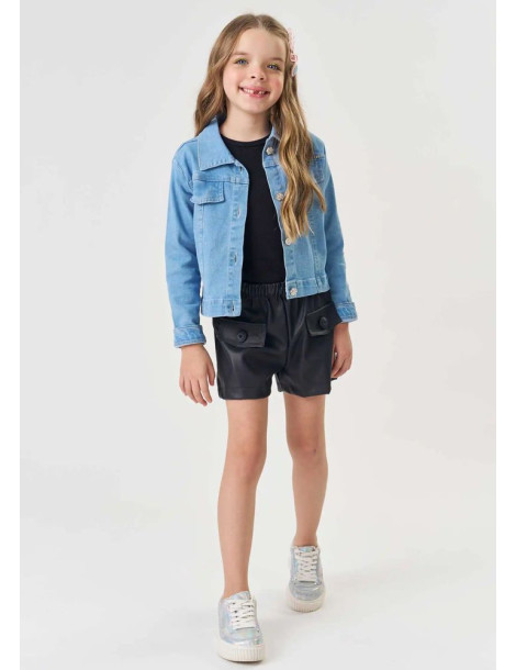 Trend da estação! As peças de couro sintético, além de ecologicamente corretas, são muito procuradas nas estações mais frias do ano. Este Shorts Infantil Menina Couro Ecológico Preto Le Petit Kukiê, é super confortável e macio ao toque. Possui cós largo em elástico largo para maior conforto ao vestir, e cordão interno para ajuste.