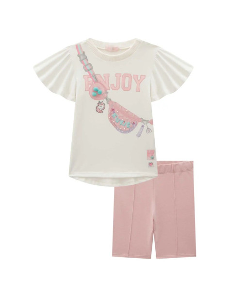 Conj Inf Menina Blusa Alongada+Bermuda Biker Rosa – Kukiê