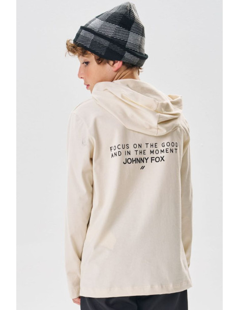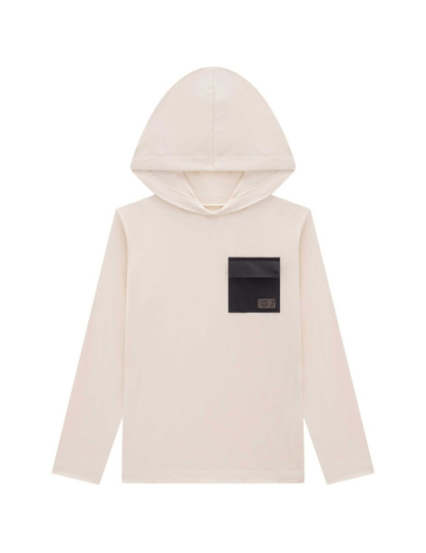 A Camiseta Infanto Juvenil Bege com Bolso da marca Johnny Fox é perfeita para meninos que buscam conforto e estilo. Feita em Meia Malha, possui manga longa e gola redonda. Conta ainda com prático capuz que os meninos adoram! Destaque para contrastante bolso em preto não peito, com aplique de etiqueta em couro Johnny Fox. Etiqueta carimbo, para não incomodar o menino durante o uso. Nas costas, moderna estampa lettering. É prática e estilosa ao mesmo tempo. Os meninos vão adorar o design único e moderno desta peça. REF 81362
